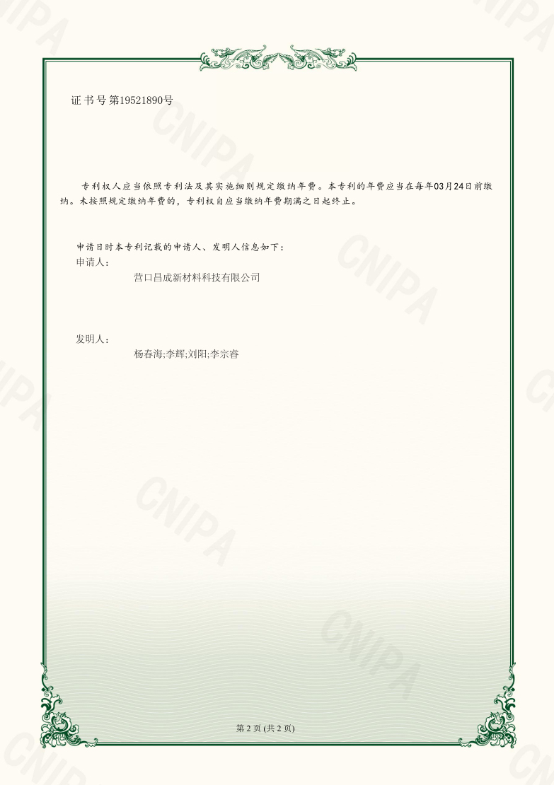 營(yíng)口昌成新材料科技有限公司 版權(quán)所有(C)2021?網(wǎng)絡(luò)支持?中國(guó)化工網(wǎng)?全球化工網(wǎng)?生意寶?網(wǎng)盛建站?著作權(quán)聲明  遼ICP備2021005949號(hào)